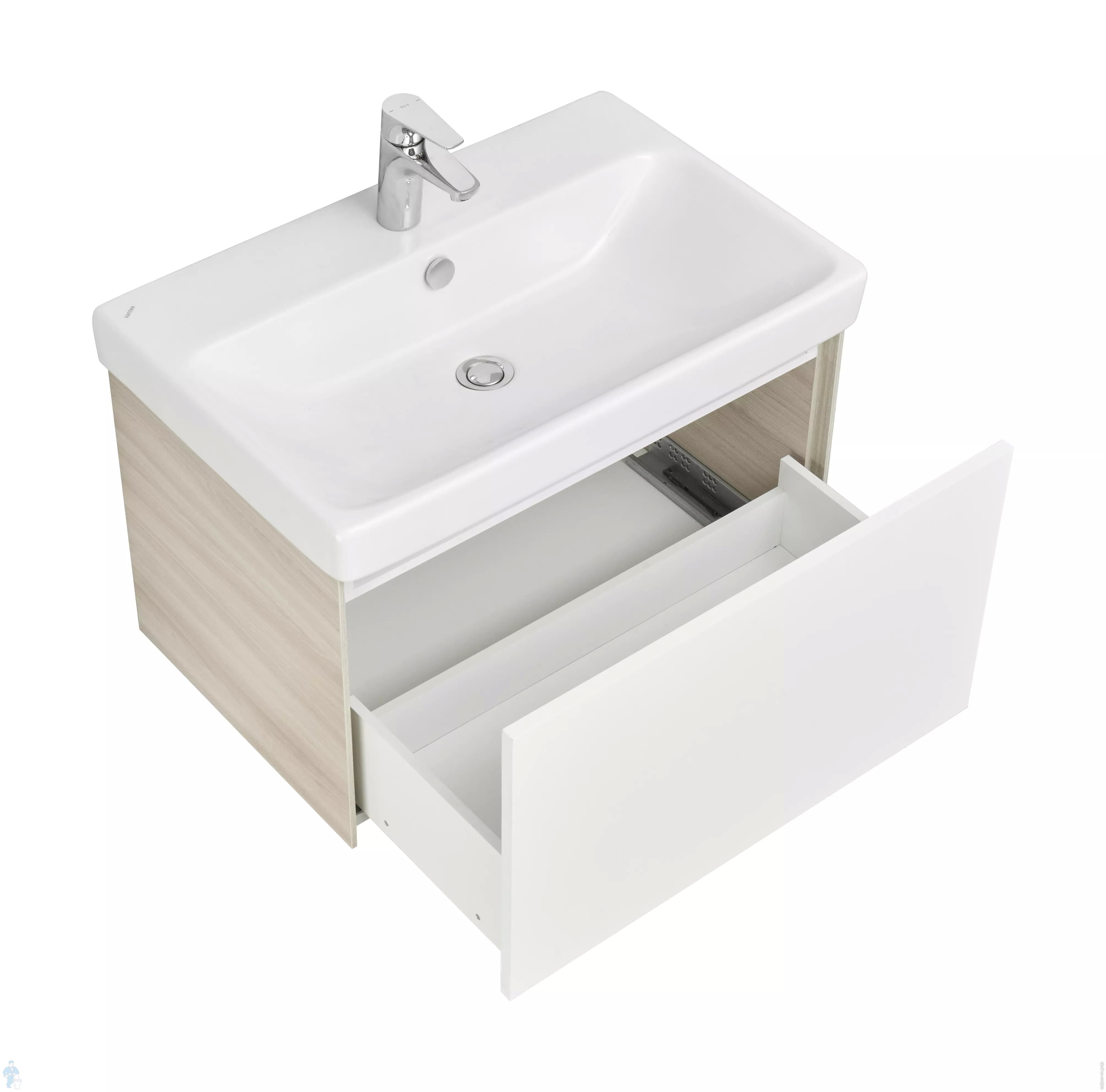 Тумба с раковиной AQUATON Асти 70 1A2630K0AXD70 427х682х400 подвесная, белый/ясень шимо (1A263001AXD70+1WH501628)