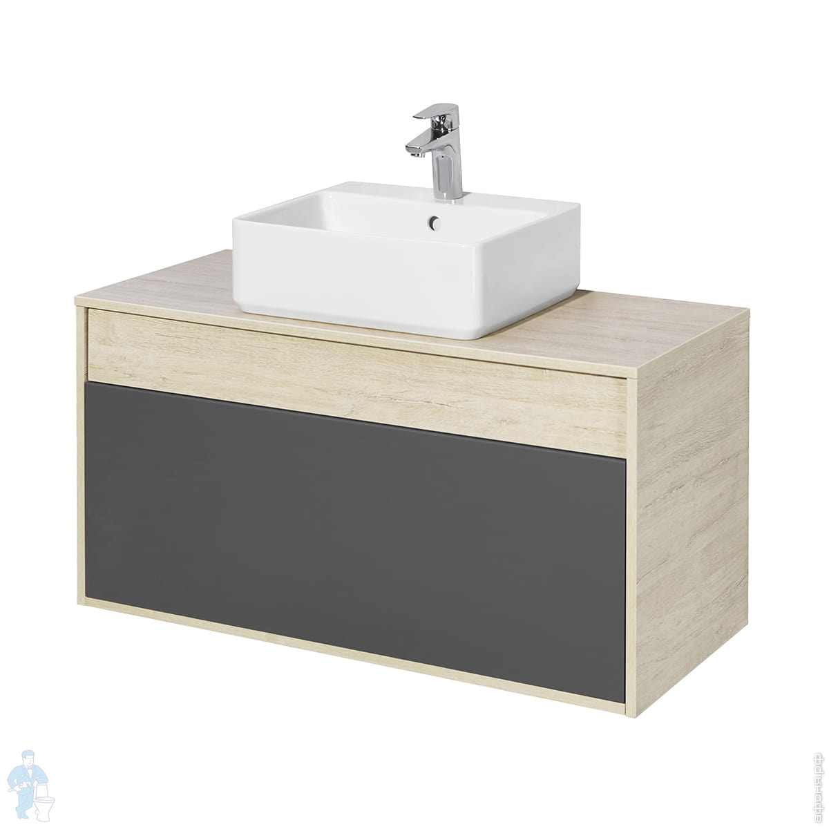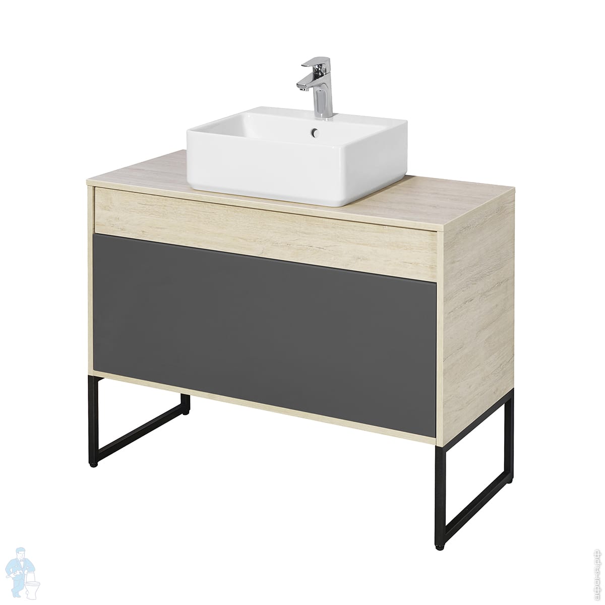 Тумба с раковиной AQUATON Лофт Урбан 100 1A2477K2LQX60 1000х450х510 подвесная, 2 ящика, графит\орегон (1A247701LQX60+732700B000)