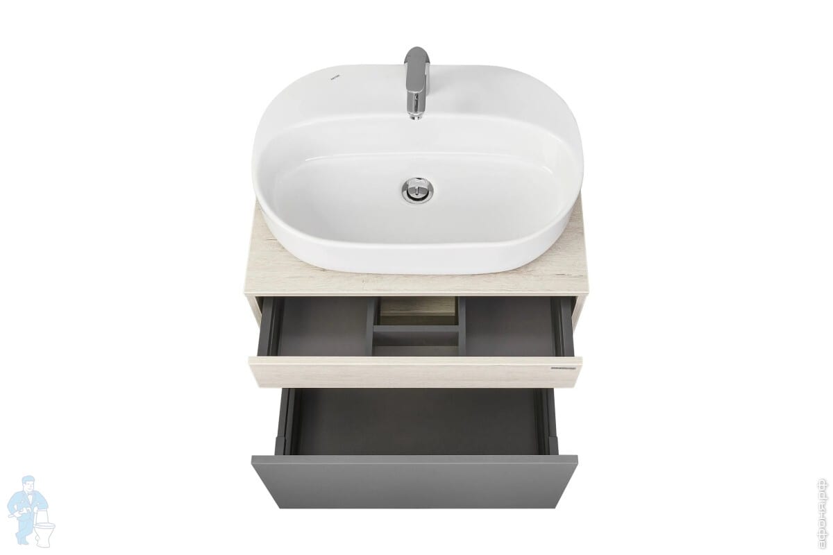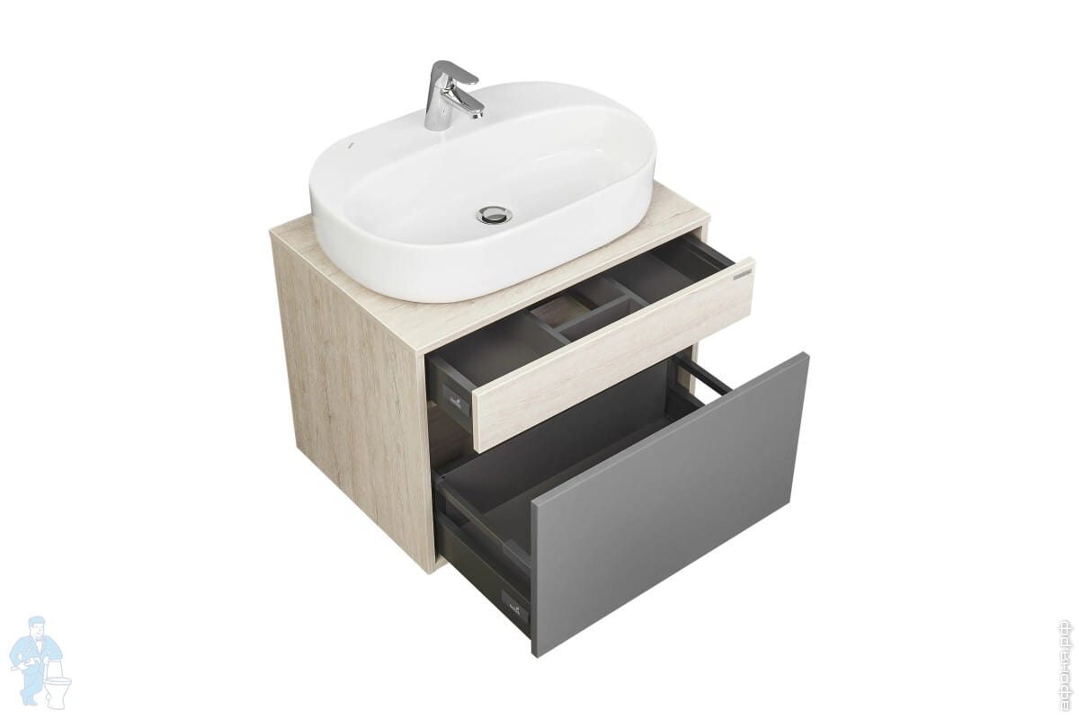 Тумба с раковиной AQUATON Лофт Урбан 65 1A2540K4LQX60 650х450х510 2 ящика, графит\орегон (1A254001LQX60+1WH501710)