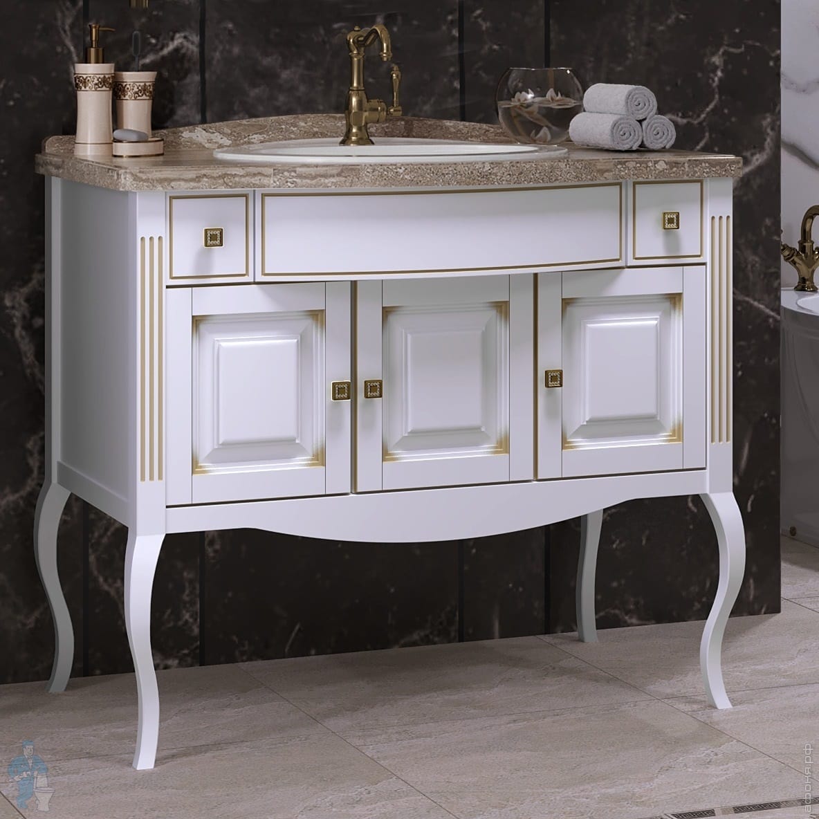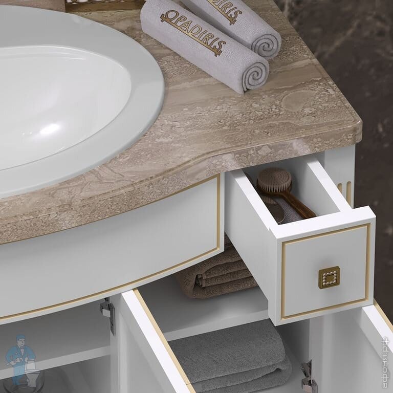Тумба с раковиной Opadiris Лаура 100 (1000х940х540) напольная,со столешницей,белый мат/золотая патина Z0000007090+Z0000013435+TP230-00CB00Е-0000