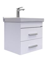 Тумба оснащена двумя выдвижными ящиками, с системой плавного закрывания, и подготовлена для подключения водоснабжения снизу.