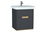 Тумба с раковиной Vitra Sento 630х615х485 подвесная, с подсветкой, 2 ящика, матовый антрацит 60834