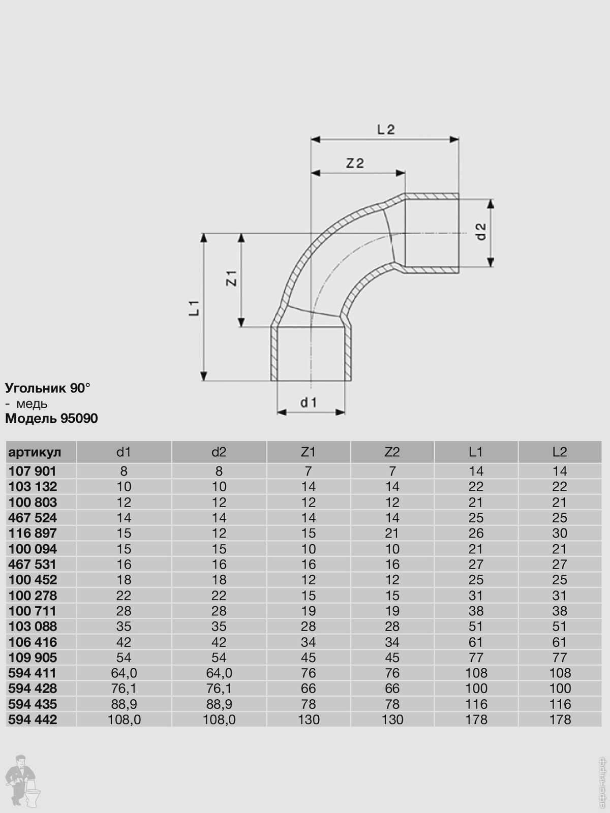 Уголок под пайку, 54х54мм, 90*, двухраструбный, для медных труб, 109905