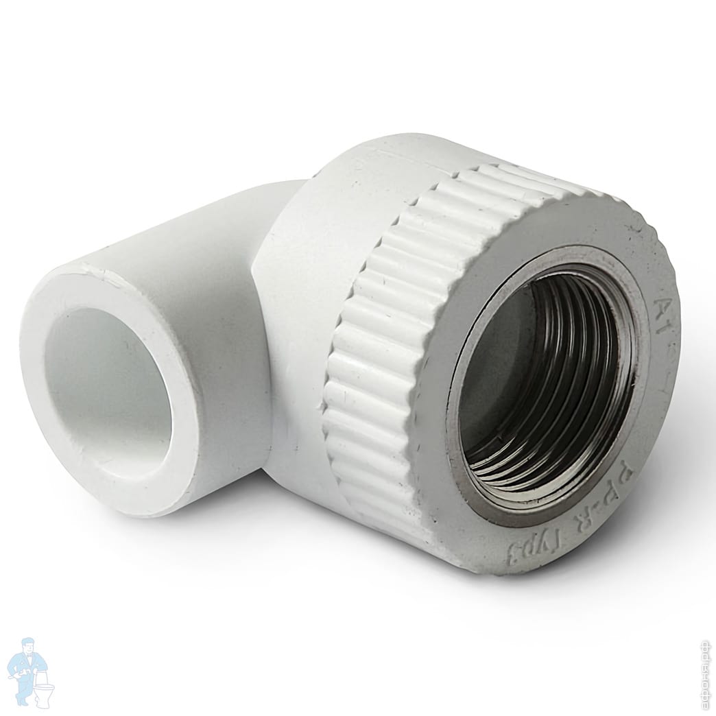 Уголок, 20х1/2"В, 90°, комбинированный с резьбой, для полипропиленовых труб, белый