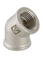 Фитинг резьбовой VTr.091 - угольник 45°, применение которого позволяет монтировать пересечение стальных трубопроводов сложных узлов и при их прокладке в помещениях нестандартной планировки более компактно и эстетично, чем использовании обычных угольников 90°. Резьба патрубков - цилиндрическая трубная по ГОСТу 6357 (ISO 228, EN 10226), совместимая также с наружной конической резьбой по ГОСТу 6211 (ISO R7), внутренняя/внутренняя.