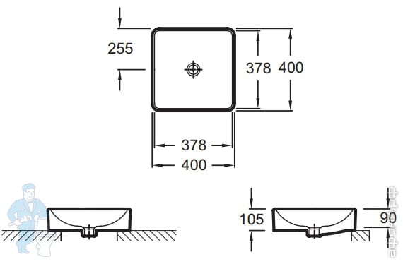 Умывальник Jacob Delafon Vox (400х400) EVG102-MG2 накладной, с переливом, серый гранит