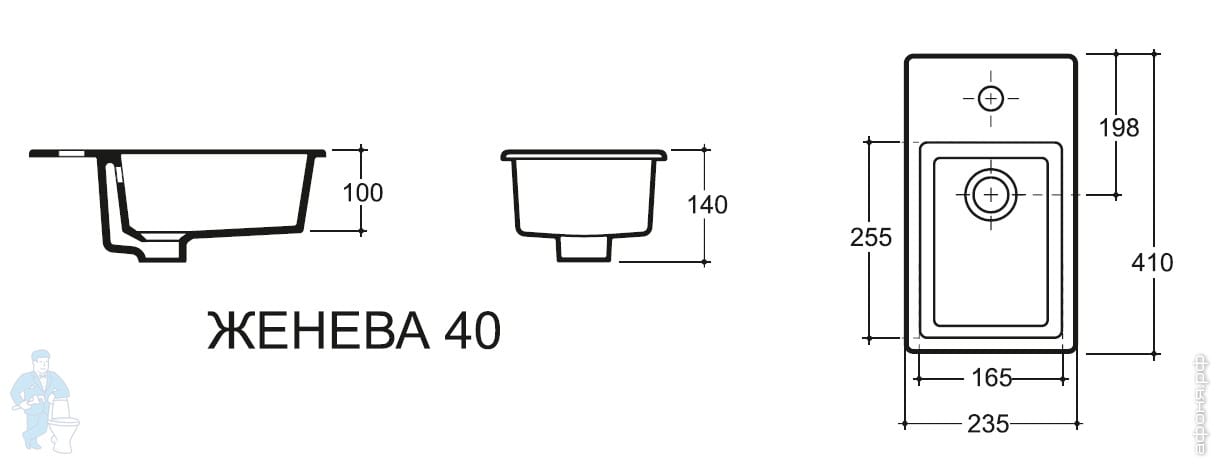 Умывальник Керамин ЖЕНЕВА 40 (235х140х410) встраиваемый сверху, отверстие под смеситель
