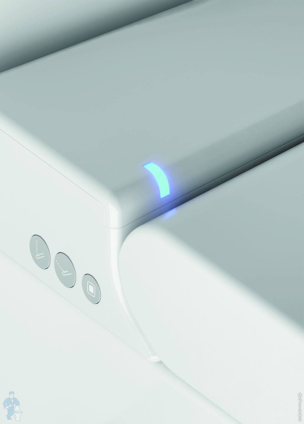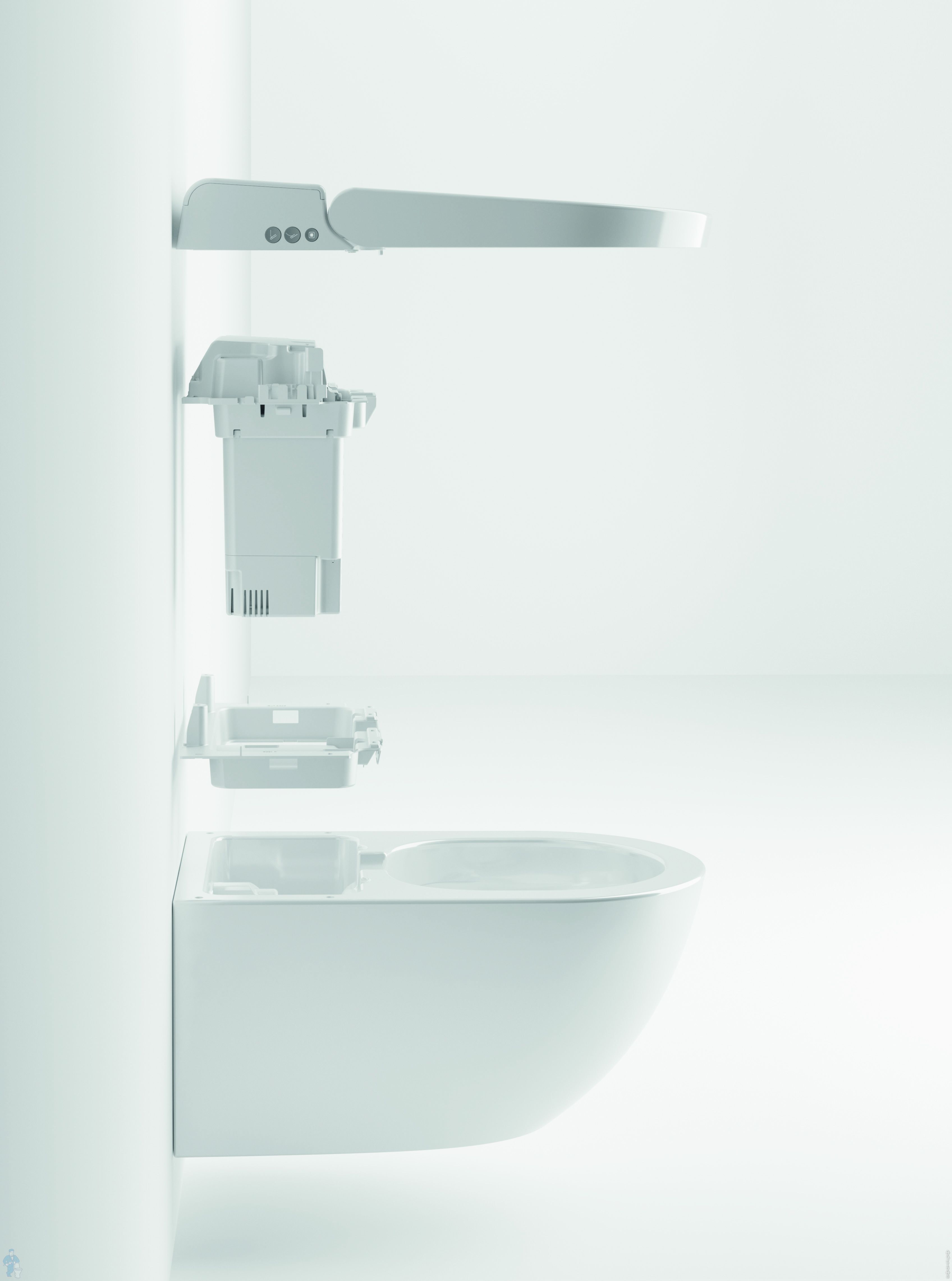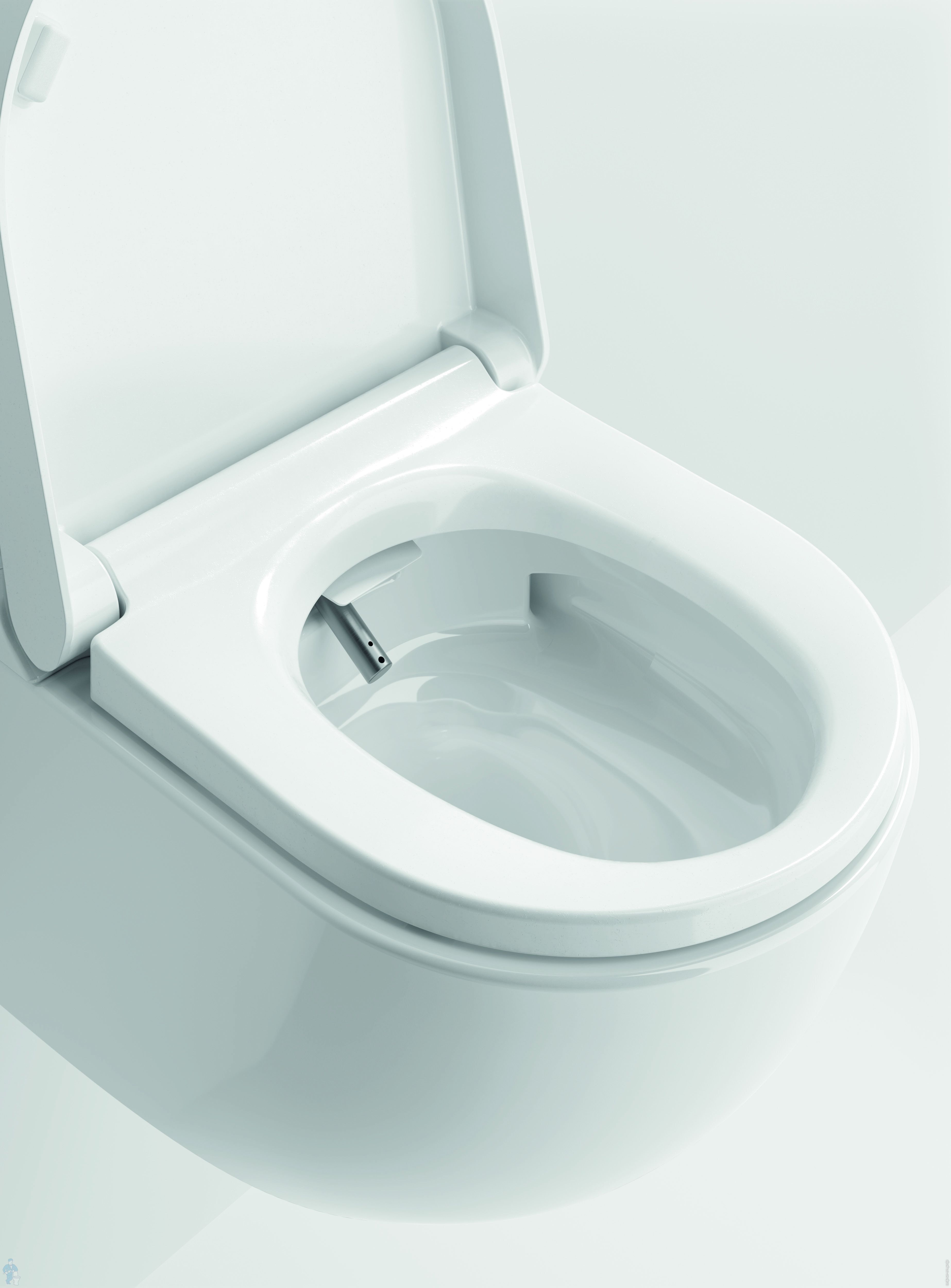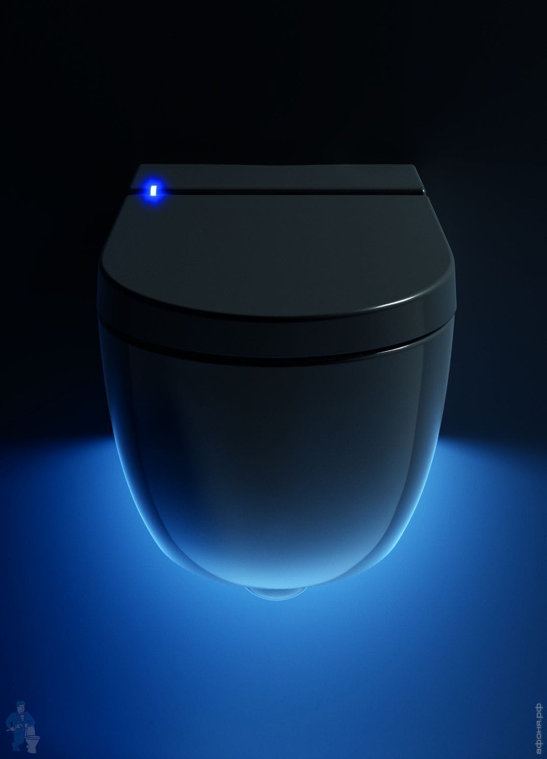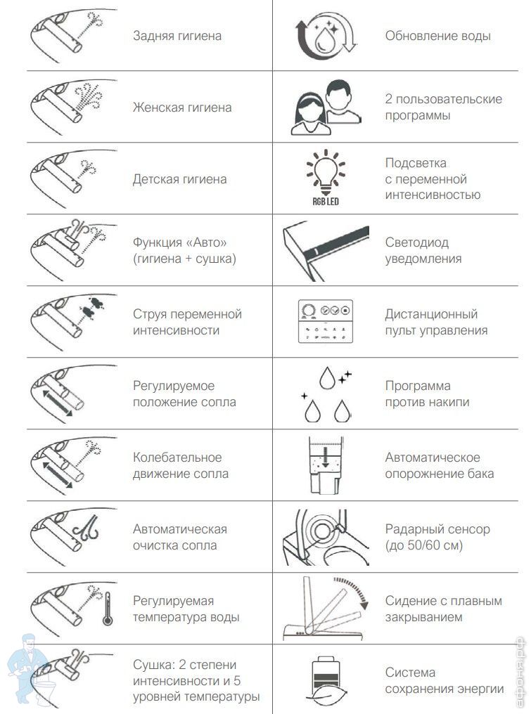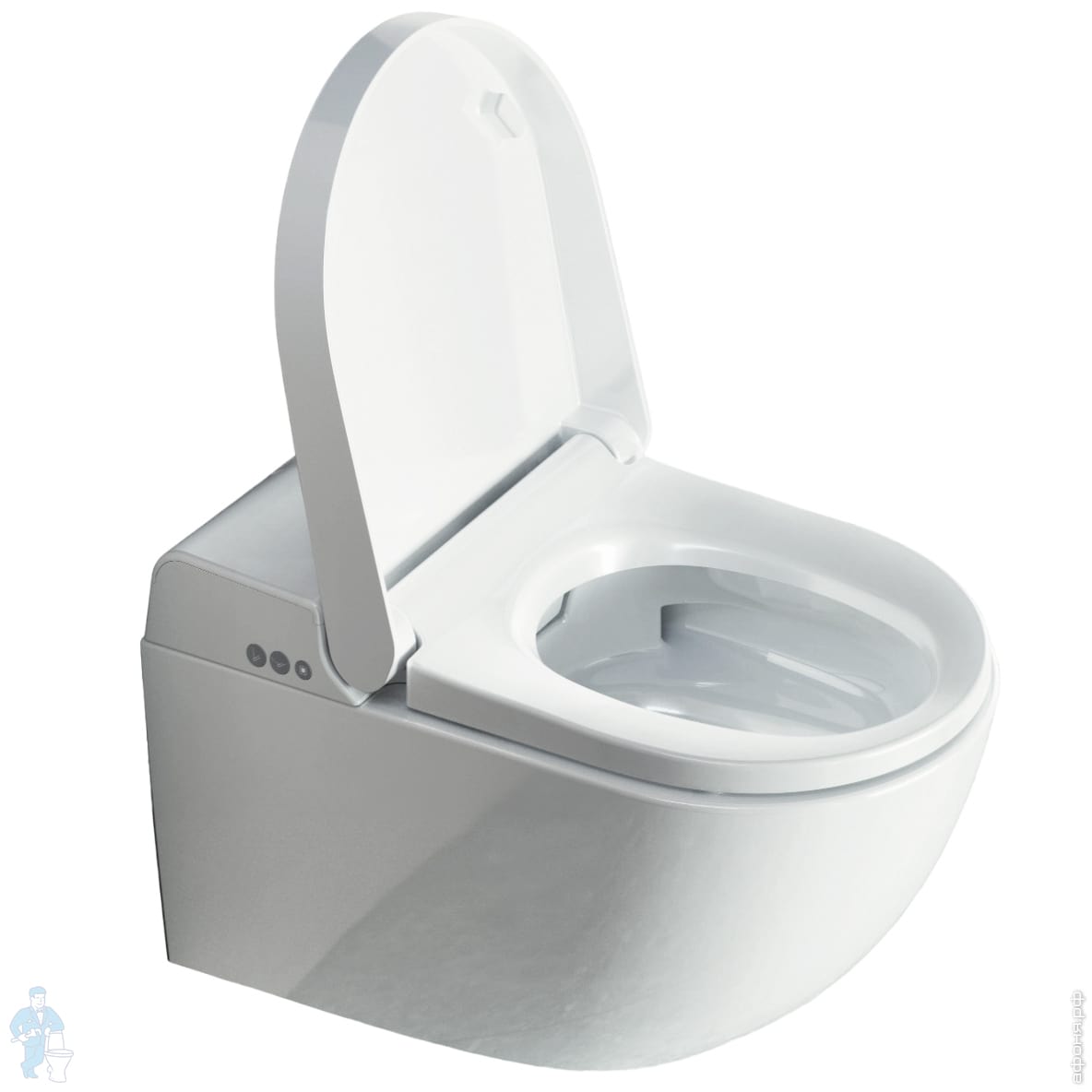 Унитаз безободковый, покрыт антибактериальной глазурью - Extraglaze, оснащен модулем электронного биде