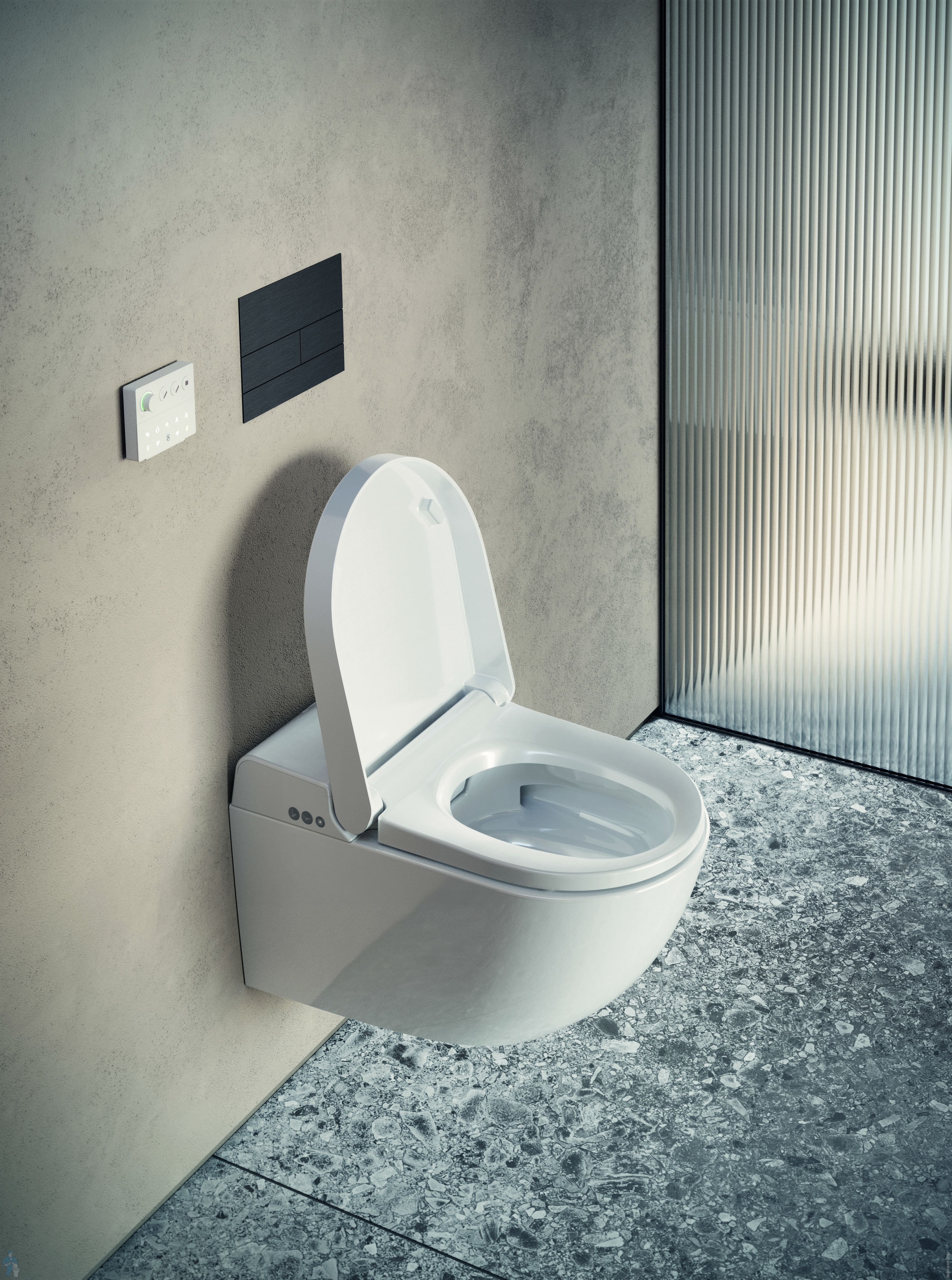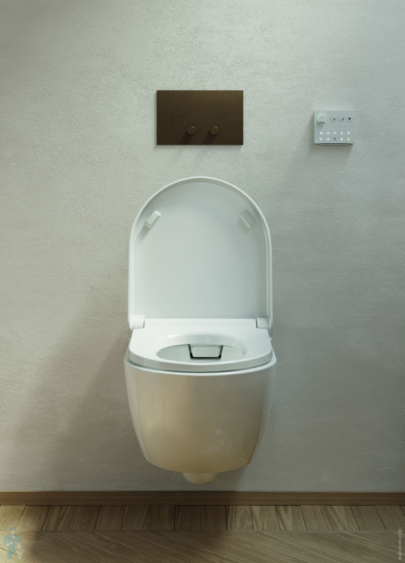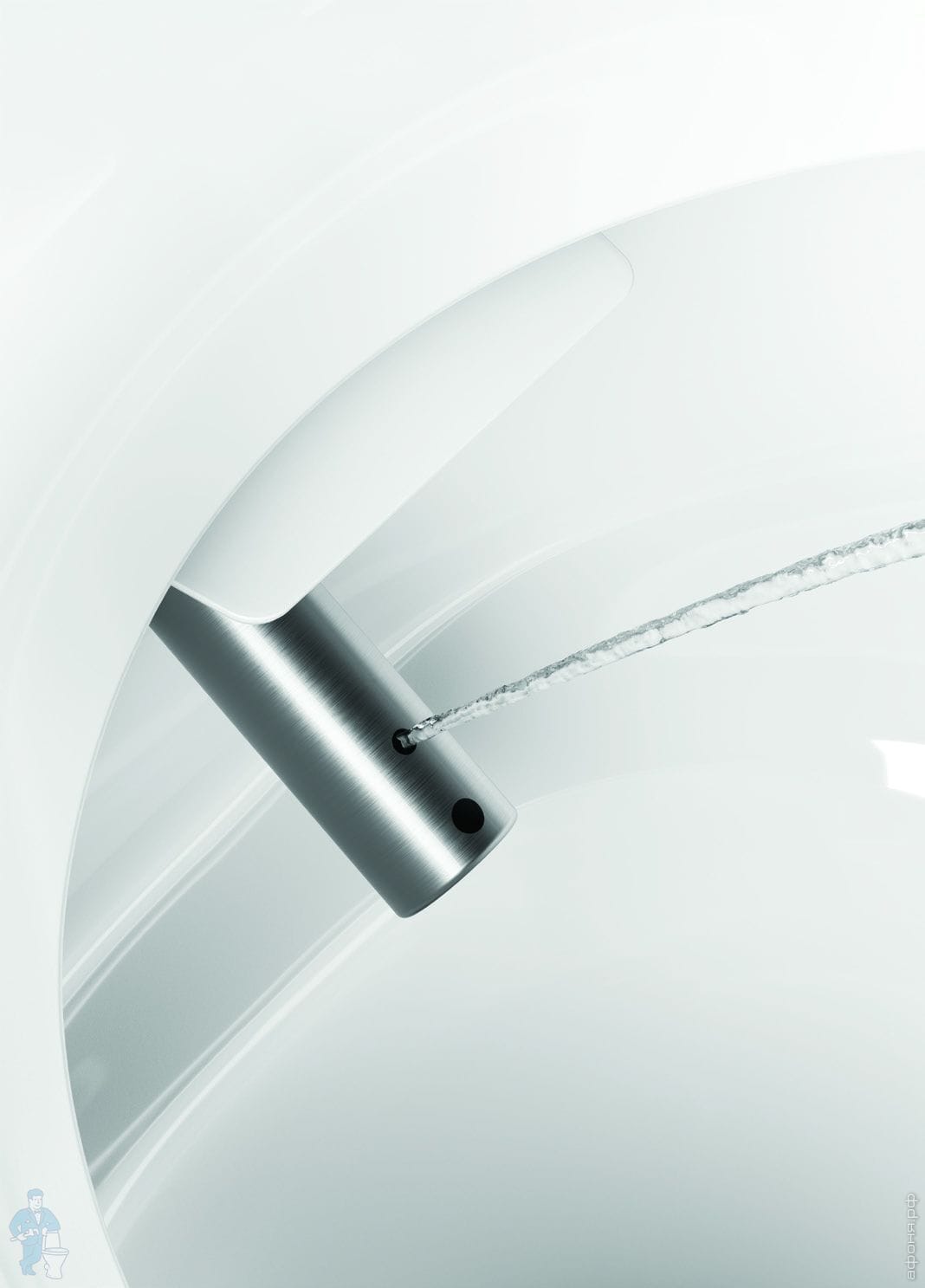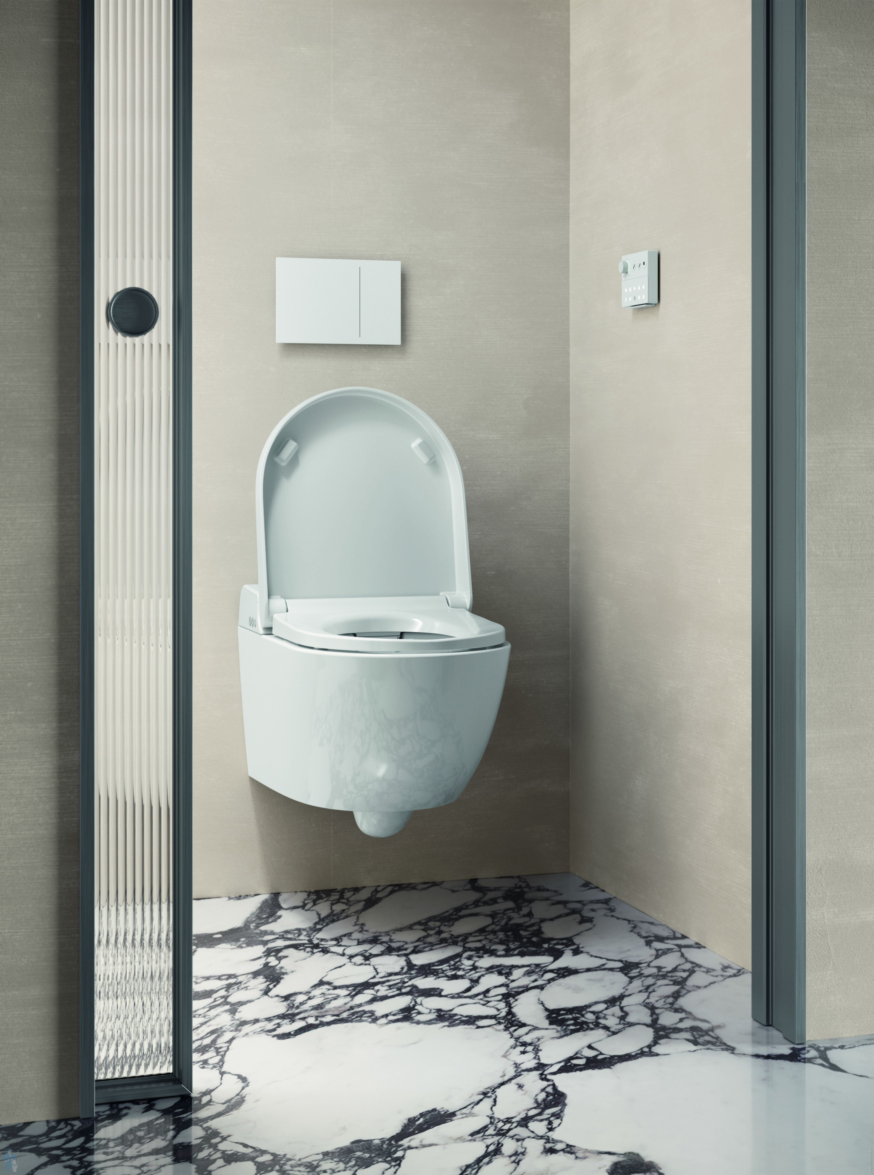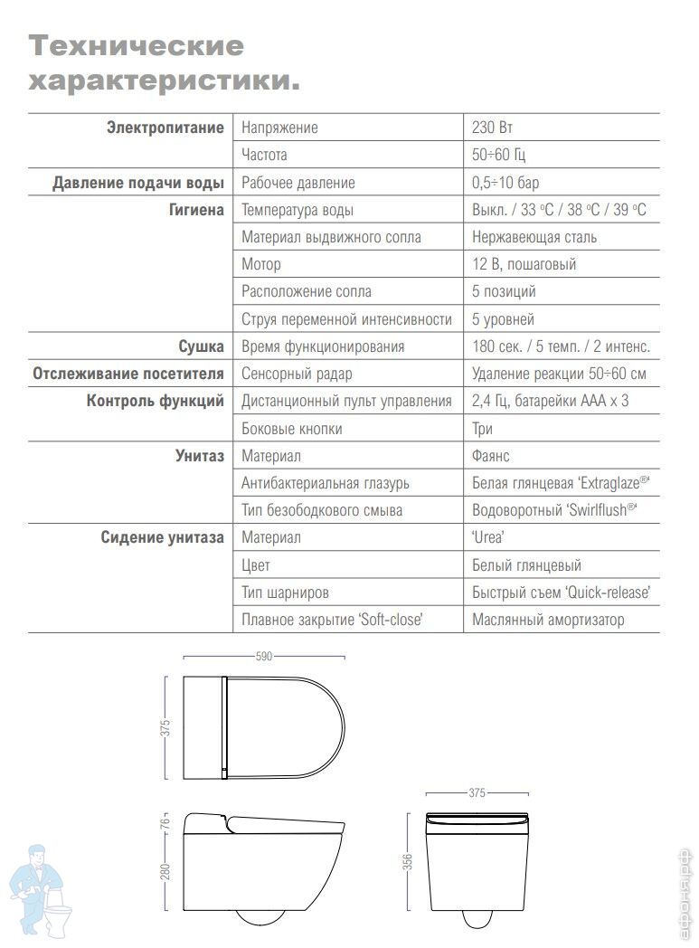 Унитаз безободковый, покрыт антибактериальной глазурью - Extraglaze, оснащен модулем электронного биде