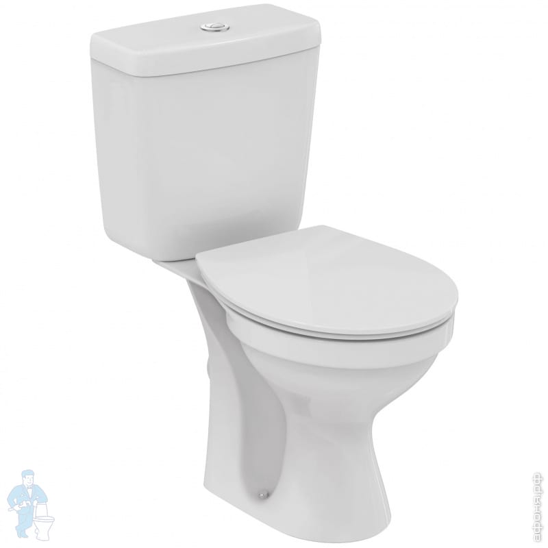 Безободковый (технология Cut Rimless) напольный унитаз-компакт, горизонтальный выпуск, нижняя подводка, двойной смыв 3/6 л, с сидением и крышкой с функцией плавного закрытия E131801