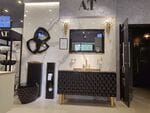 3. Тумба с раковиной AeT напольная, с выдвижныйм ящиком, цвет: черный глянец/золото