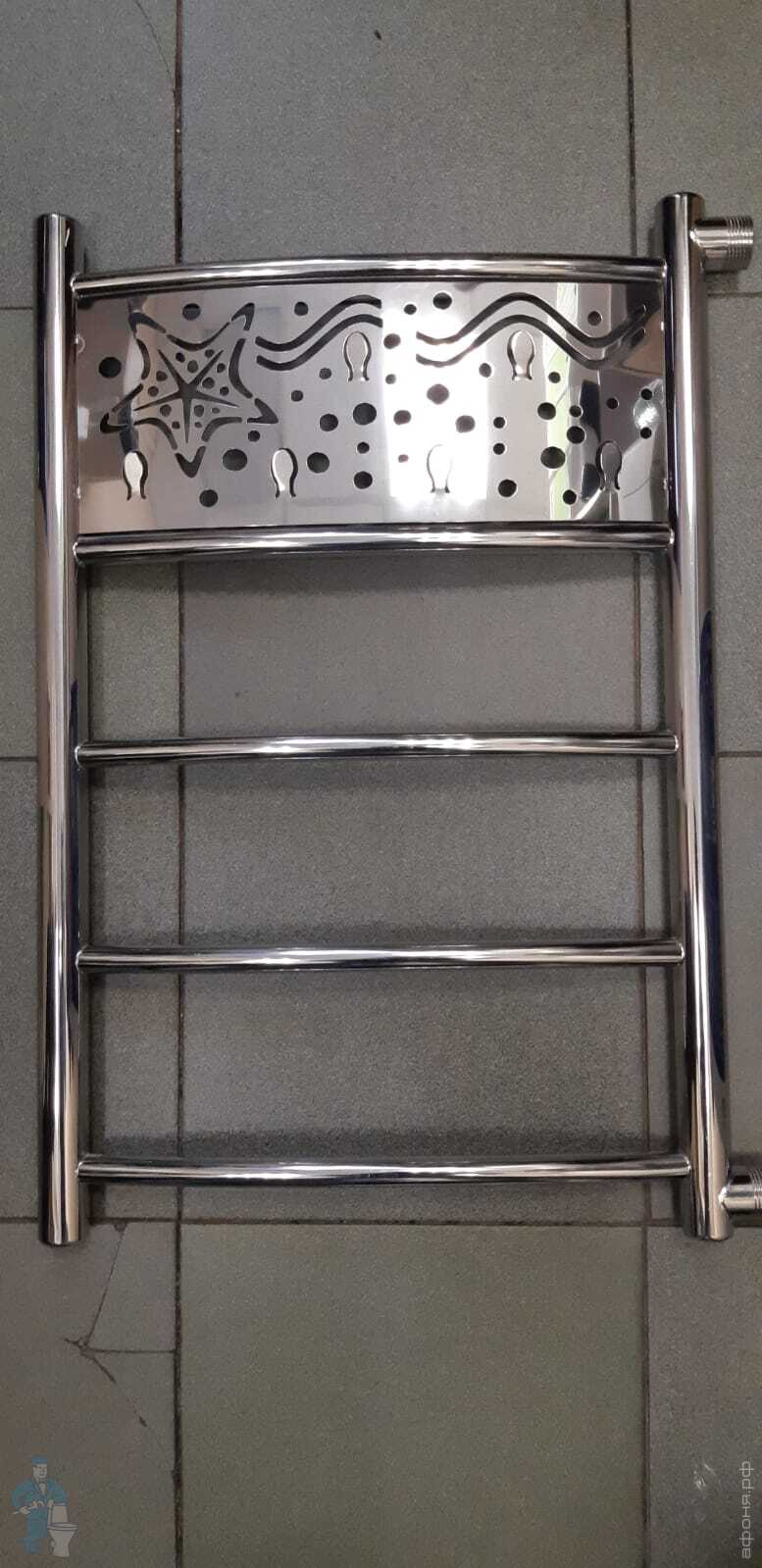 Уценка! Полотенцесушитель Флагман "Морская звезда" 600х400 нерж. сталь, бок.прав. под. с крючками