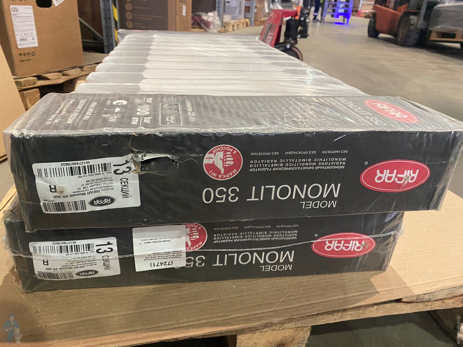 Уценка!Радиатор биметаллический Rifar Monolit Ventil MVR 350 нижнее подкл., 13 секций, 80мм, 1742 Вт