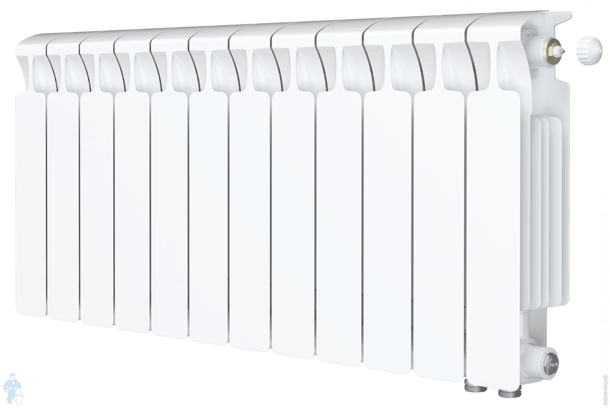 Уценка! Радиатор биметаллический Rifar Monolit Ventil MVR 350 нижнее правое подкл, 12 секц., 1656 Вт