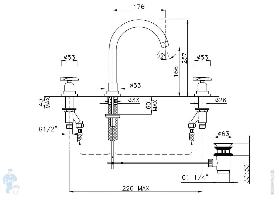 | Тип: | Двухзахватный | Назначение: | Для раковины |