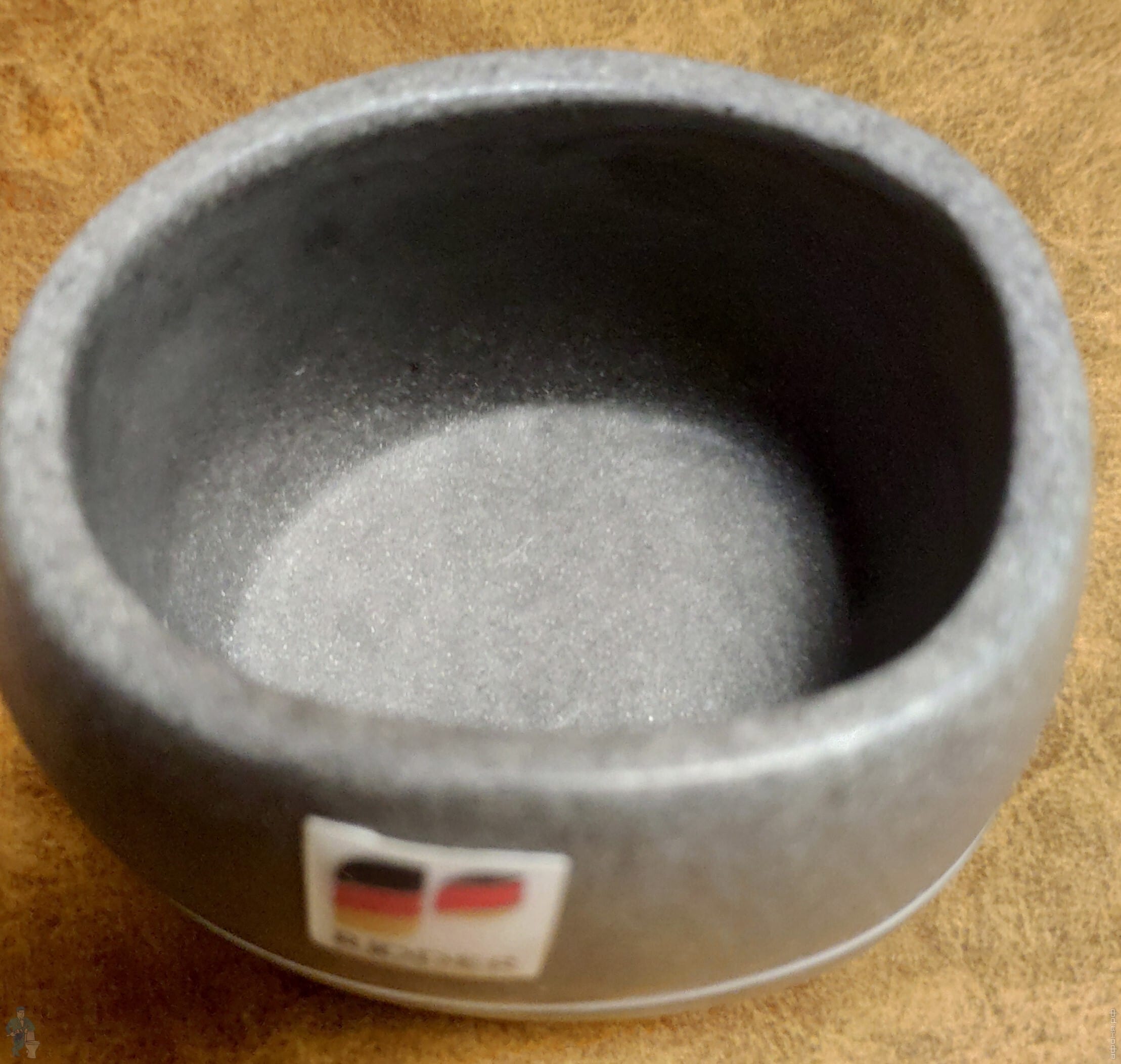 Изделия серии Little Rock выполнены из экологичной полирезины - твердого многокомпонентного материала, изготовленного на основе синтетической смолы, в состав которой добавлены не только красящие пигменты, но и натуральная каменная крошка, для имитации структуры натурального камня. Изделие устойчиво к воздействию ультрафиолета, а также его можно мыть в посудомоечной машине. Некоторые детали стаканчика изготовлены из нержавеющей стали.