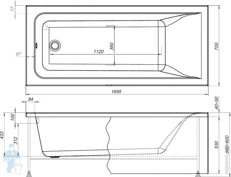 ВНИМАНИЕ! Фронтальная панель, каркас или ножки (на выбор), а также слив-перелив в стоимость не входят