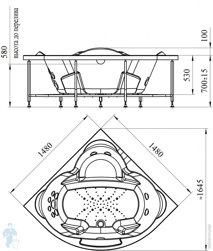 | Вид: | Ванна | ПодВид: | Угловая симметричная |