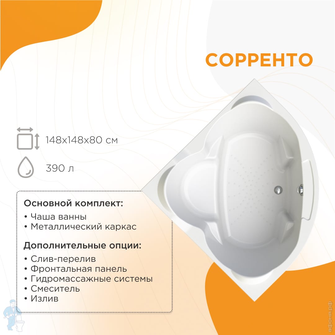 Ванна акриловая Радомир СОРРЕНТО (1480х1480) белая, с рамой 1-01-0-0-1-037