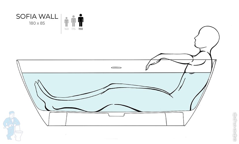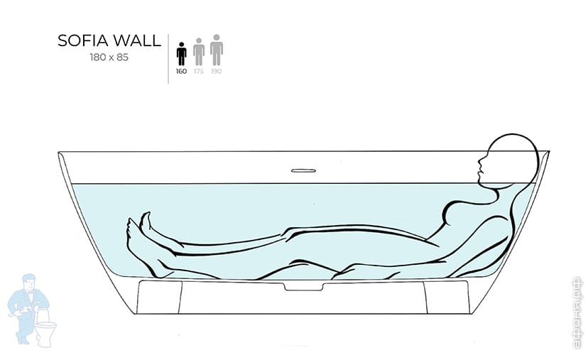 Пристенная ванна SOFIA WALL 180 - это новый размер в серии и новый взгляд на отдельностоящую ванну SOFIA.