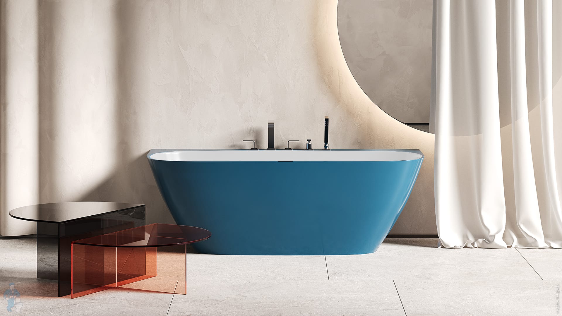 Ванна представлена в материалах S-Stone с бархатисто-матовой поверхностью и в материале S-Sense с ослепительным глянцем.