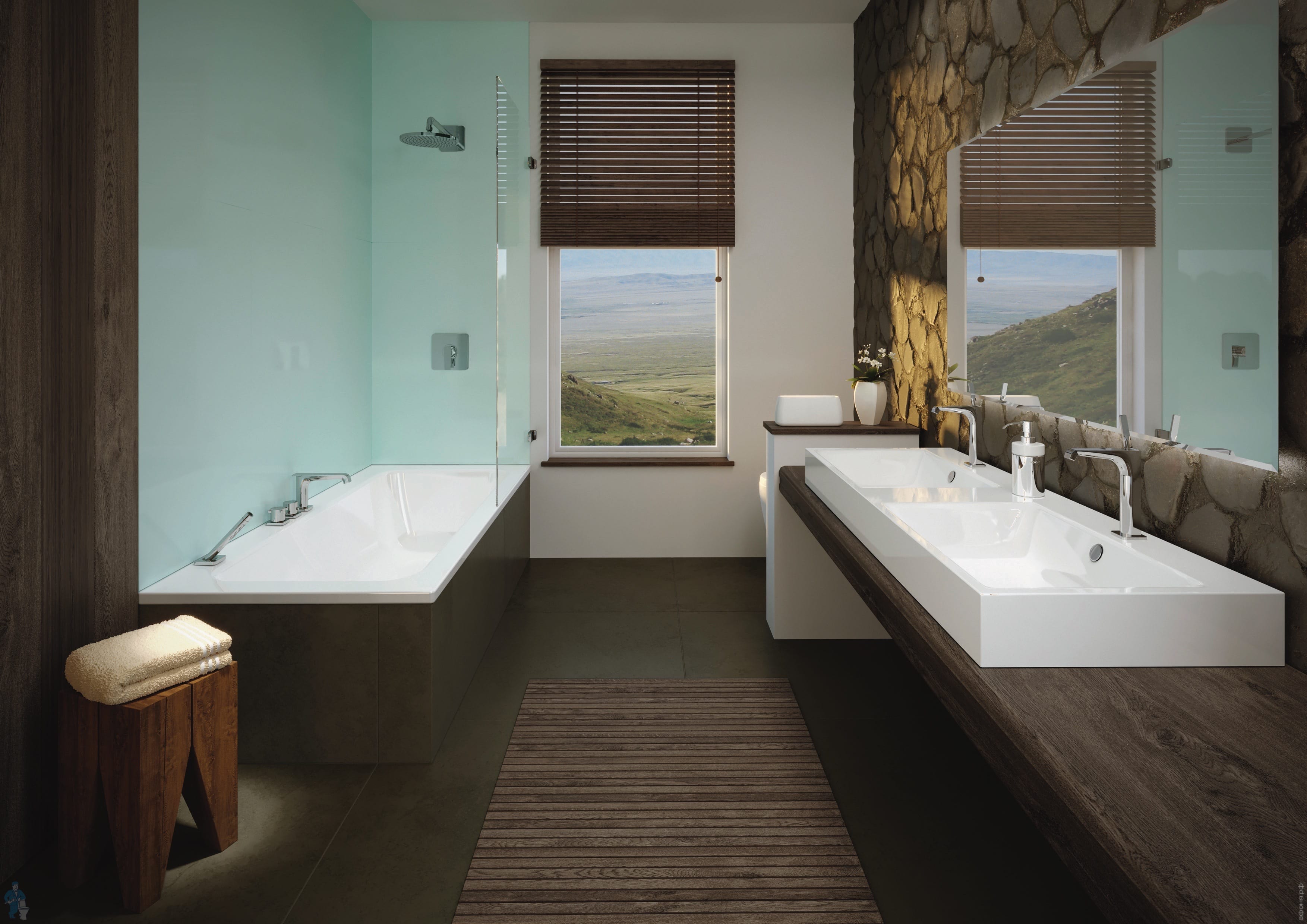 * Четкая, минималистичная четырехугольная ванна с узкими бортами
