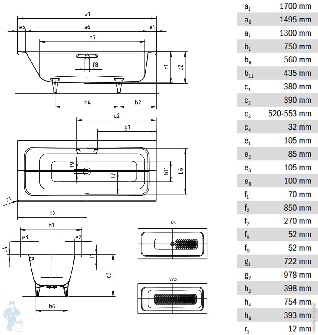 * Небольшая глубина позволяет без труда ложиться в ванну и вставать из нее и помогает экономить воду