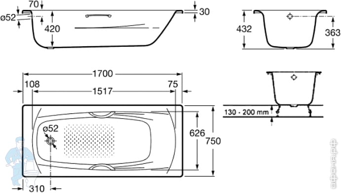 | Вид: | Ванна | ПодВид: | Прямоугольная |