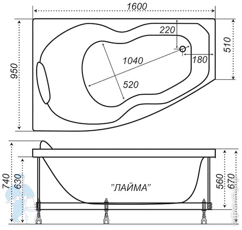 | Длина, мм: | 1600 | Ширина, мм: | 950 |