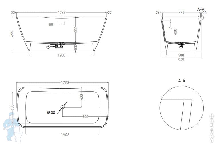 - ванна (1800х810х660 мм)