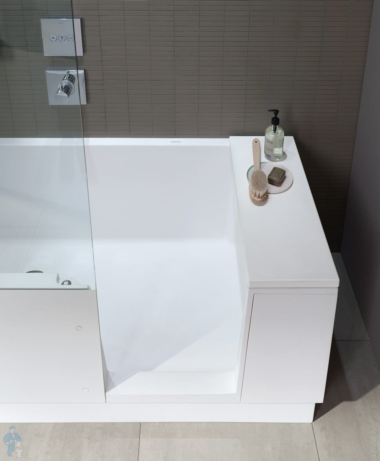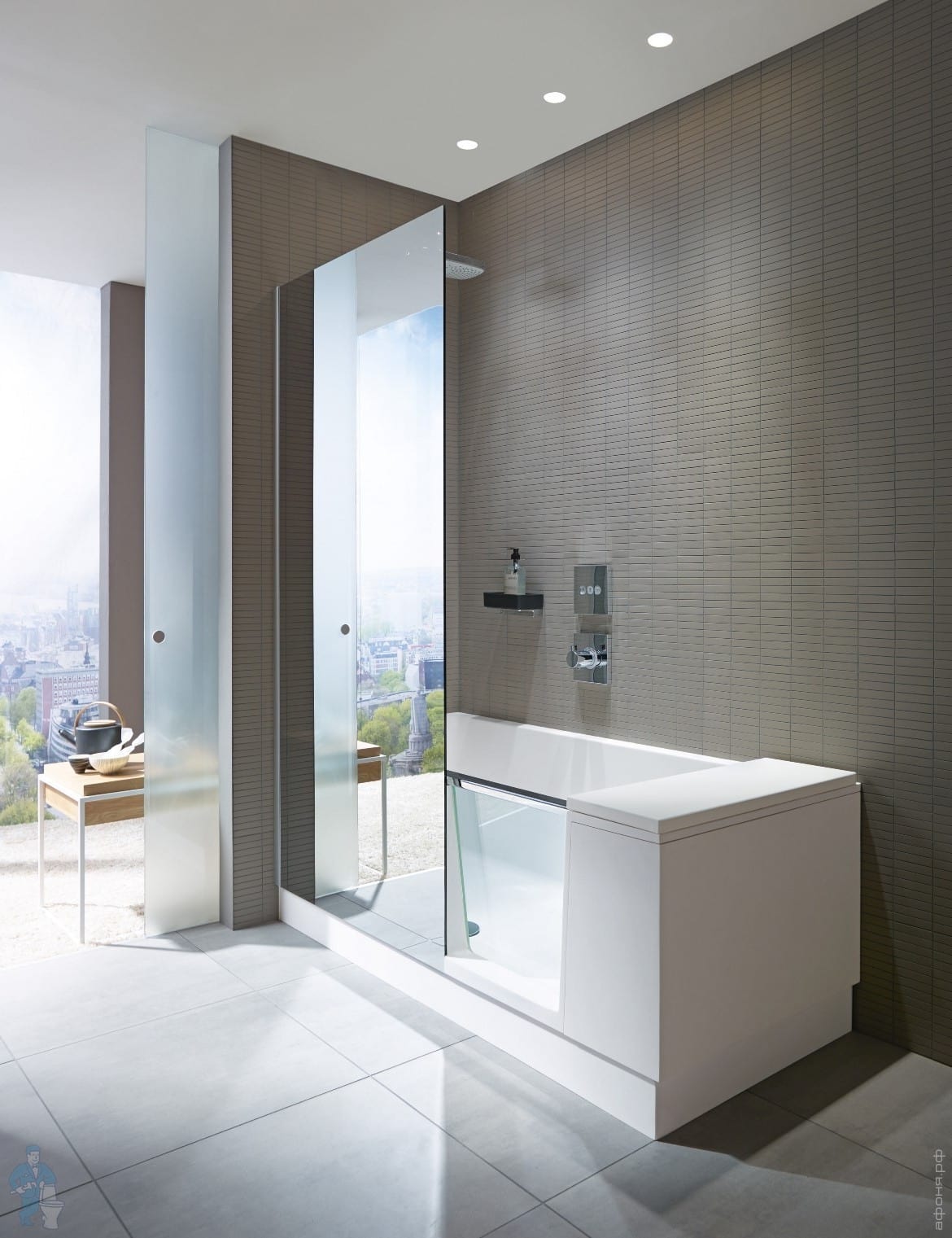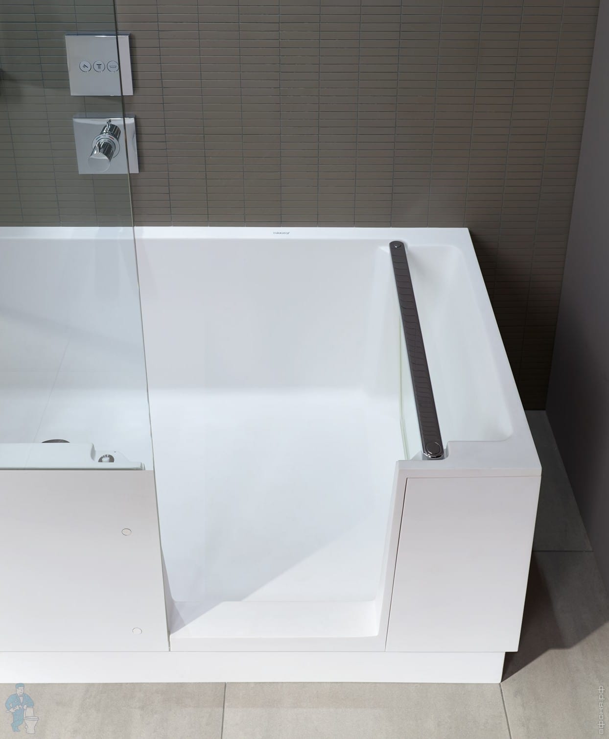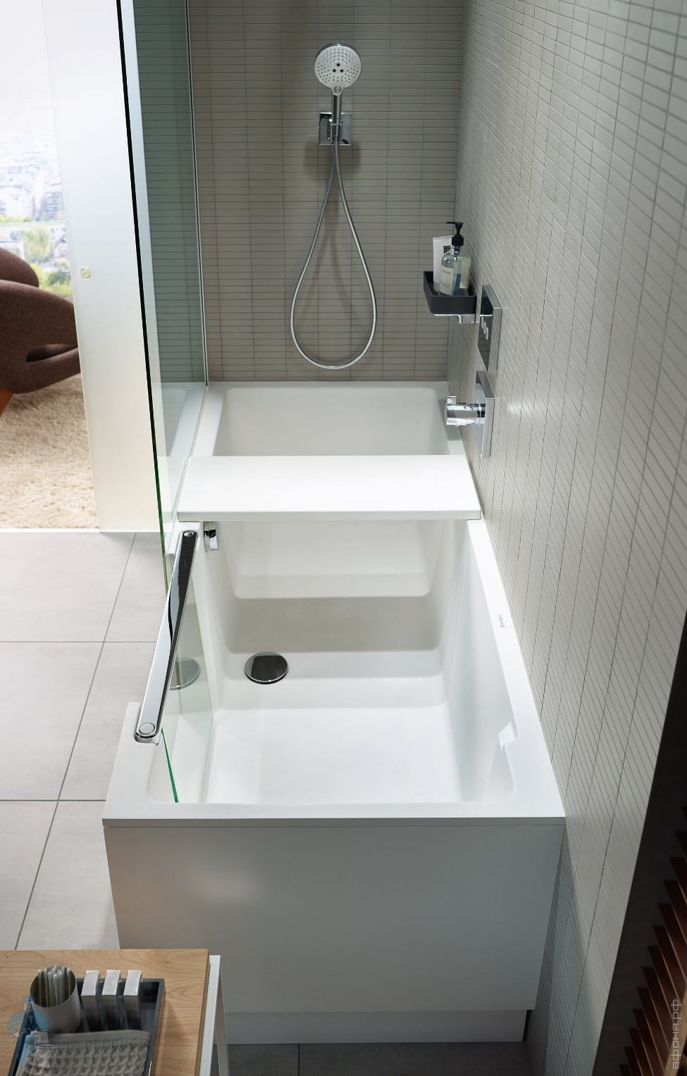Особенно удобен простой доступ в душ. Благодаря стеклянной дверце просторный интерьер ванны обеспечивает максимальный простор для движения.