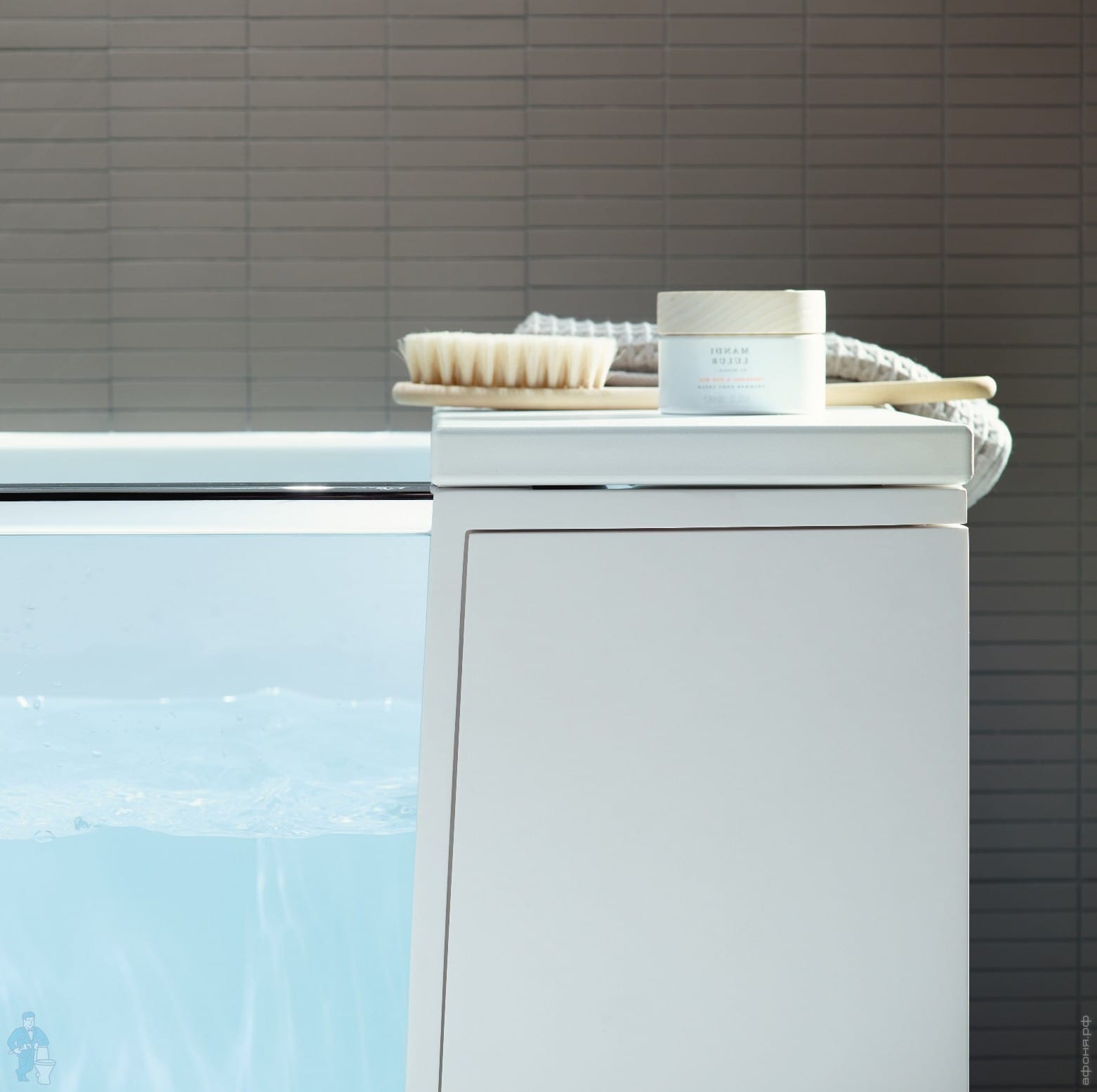 Непромокаемую подушку-сиденье (в комплекте) можно использовать до, во время и после принятия душа: в качестве комфортного сиденья или практичного места для хранения банных принадлежностей и полотенец, напитков, материалов для чтения и пр. Сиденье очень удобно во время приема ванны. Оно превращается в удобный подголовник и может быть индивидуально приспособлено.
