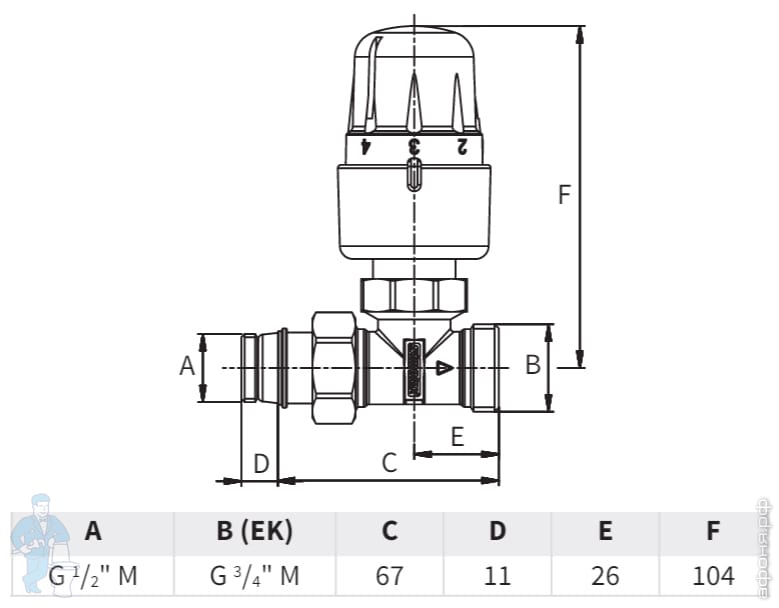 Вентиль в комплекте с термостатической головкой, прямой 1/2 x 3/4 Meibes RTL F11882 (SX11882)