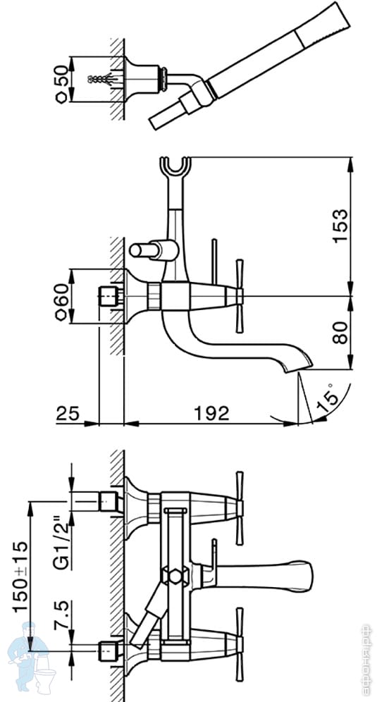 | Вид: | Смеситель | ПодВид: | Настенный смеситель |