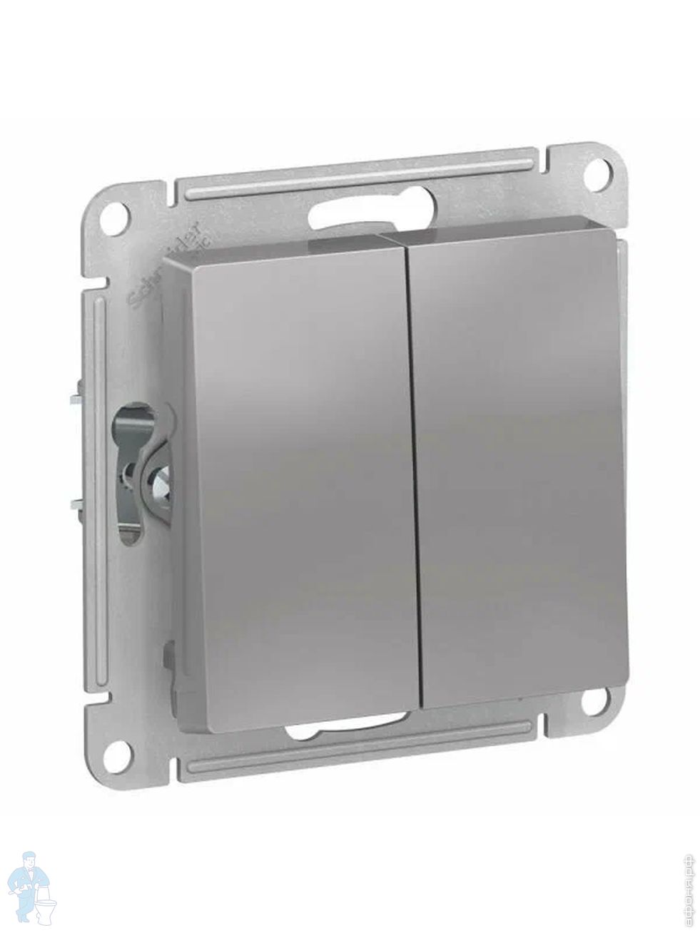 - Механизм Systeme Electric (ранее Schneider Electric) серии AtlasDesign в цвете алюминий выключателя 2-клавишного подходит для сетей 250 В, на ток 10 А.