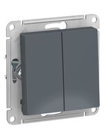 - Механизм выключателя 2-клавишного Systeme Electric (ранее Schneider Electric) серии AtlasDesign в цвете грифель подходит для сетей 250 В, на ток 10 А.