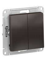 - Механизм выключателя 2-клавишного Systeme Electric (ранее Schneider Electric) серии AtlasDesign в цвете мокко подходит для сетей 250 В, на ток 10 А.