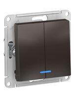 Выключатель Systeme Electric ATLASDESIGN 2-клавишный с подсветкой схема 5а 10АХ мокко ATN000653