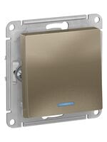 - Механизм выключателя 1-клавишного с подсветкой Systeme Electric (ранее Schneider Electric) серии AtlasDesign в цвете шампань подходит для сетей 250 В, на ток 10 А.
