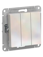 - Механизм Systeme Electric (ранее Schneider Electric) серии AtlasDesign в цвете жемчуг выключателя 3-клавишного подходит для сетей 250 В, на ток 10 А.