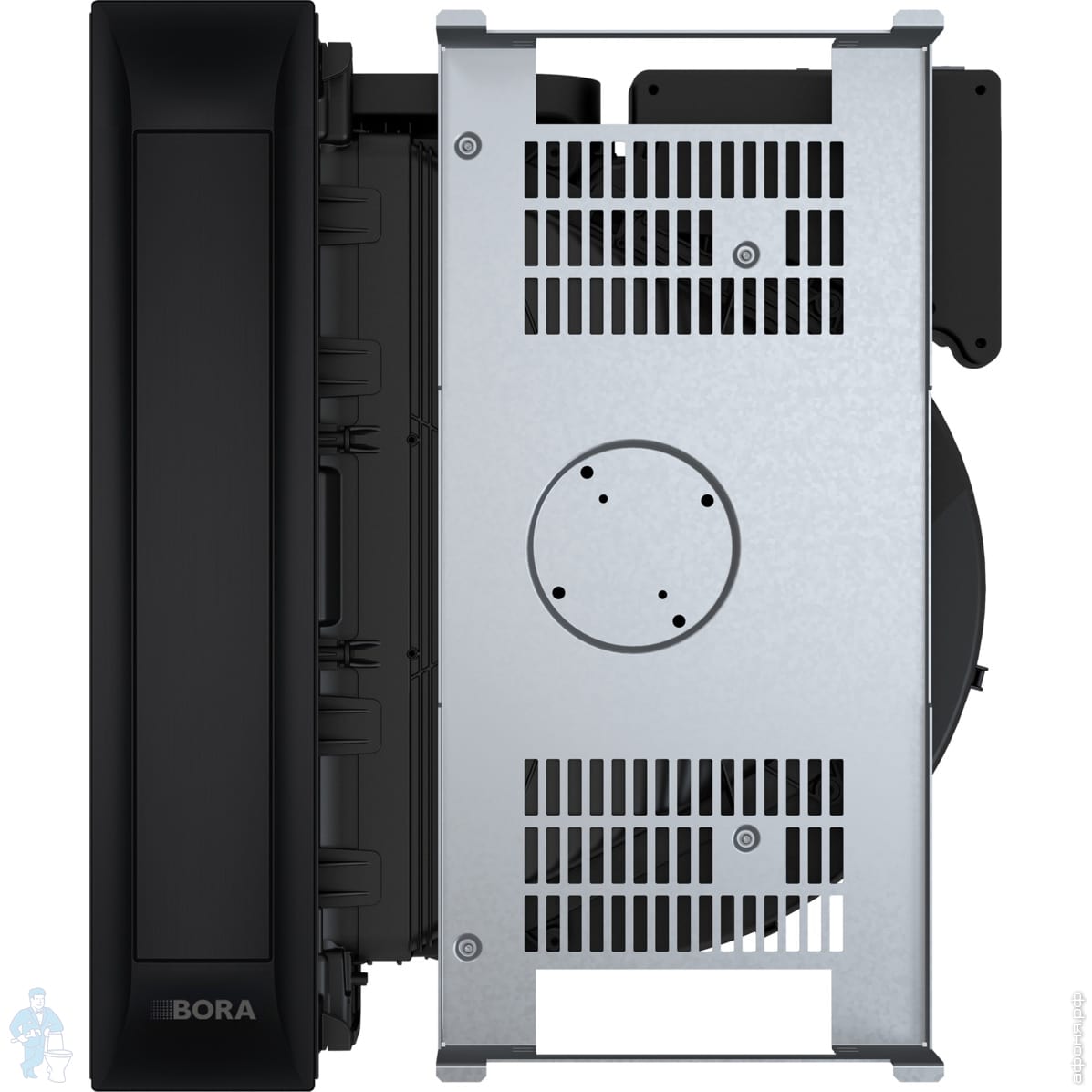 Вытяжная система со встроенным вентилятором. Монтаж в столешницу. Комбинируется со всеми варочными панелями BORA Professional 3.0 и блоками вентиляторов BORA Universal. Вытяжка работает режиме автоматической настройки уровня мощности в соответствии с текущими условиями приготовления, что позволяет обходиться без ручной регулировки.