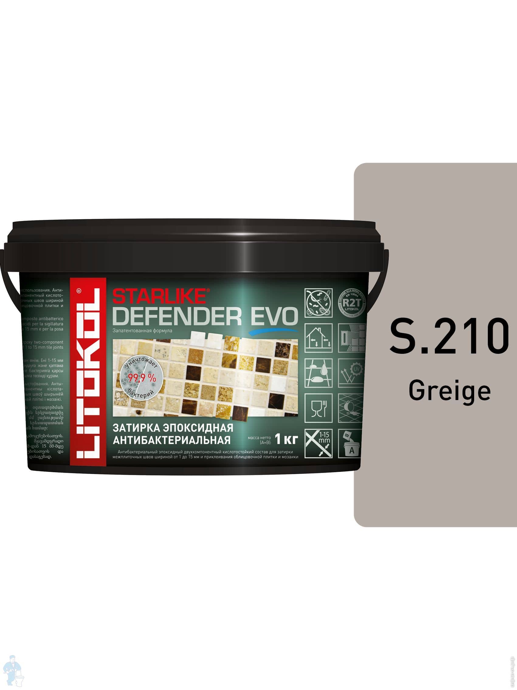 Затирка эпоксидная LITOKOL STARLIKE Defender Evo S.210 антибактериальная, серая, 1 кг