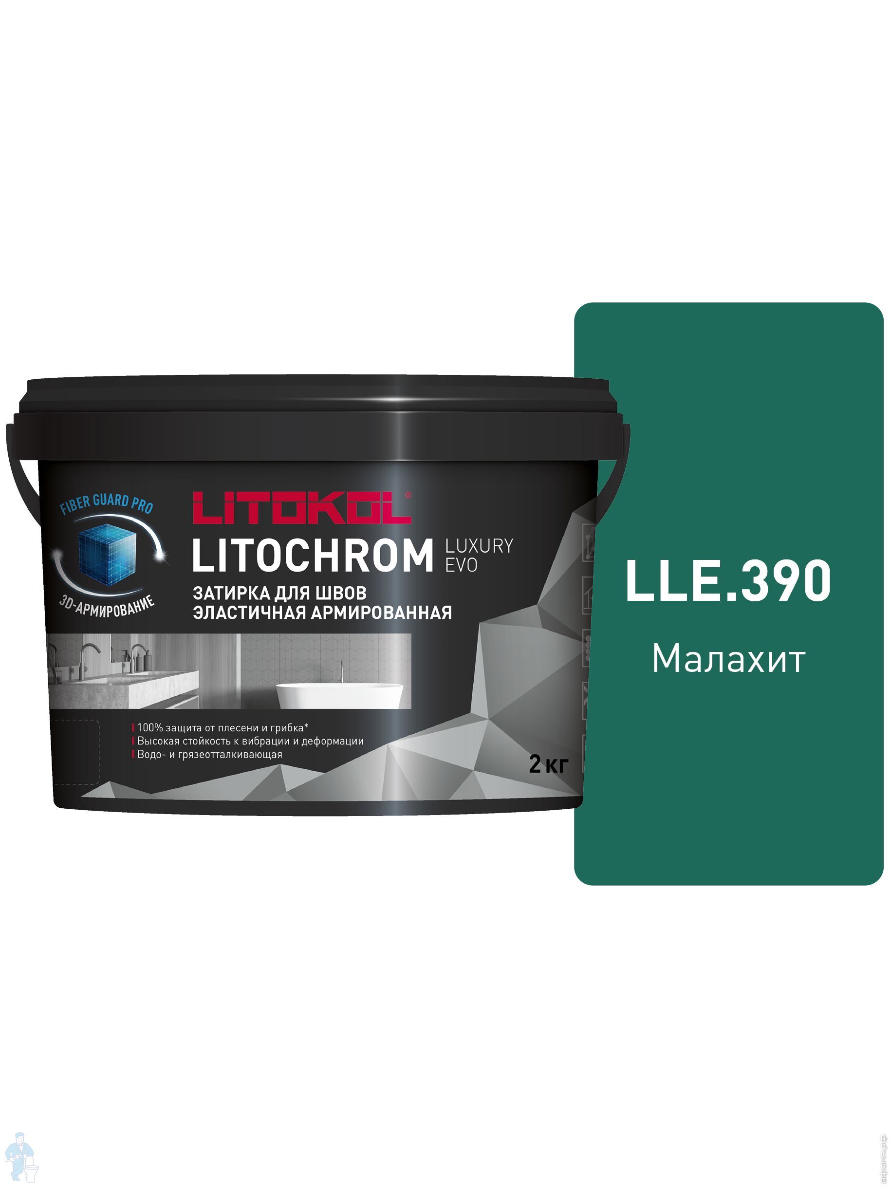 Затирка цементно-полимерная LITOKOL LITOCHROM LUXURY EVO, LLE.390 Малахит, ведро.2 кг