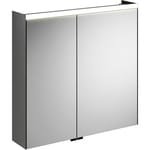 Зеркальный шкаф с зеркальным корпусом и дверцами, зеркальными с обеих сторон. Внутренняя поверхность шкафа выполнена в цвете "антрацит".