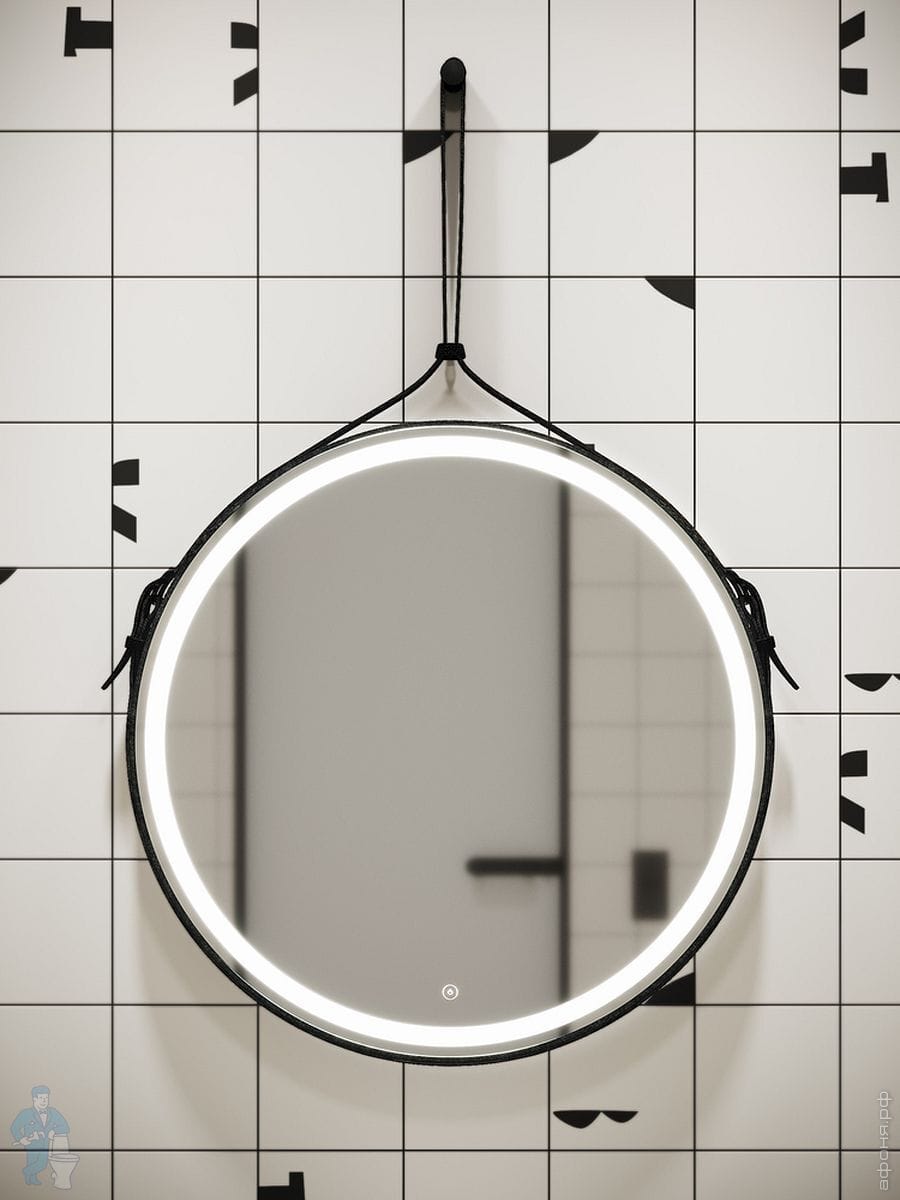 Зеркало SANCOS Dames (D650) подсветка,сенсор выключатель,пласт короб, корпус из черной кожи DA650