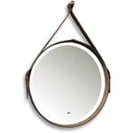 Зеркало Silver Mirrors Капитан (510х510) LED-подс.,сенсор,диммер,корич. кожаный ремень LED-00002331