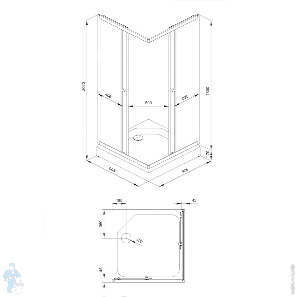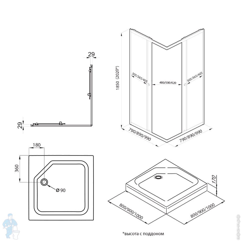 Душевая кабина Triton Лайт А (100х100) низкий поддон, стекло 4 мм белый градиент/профиль белый DK206Код: 197923