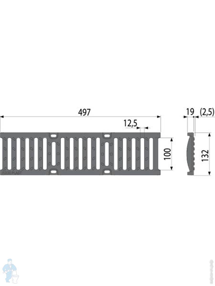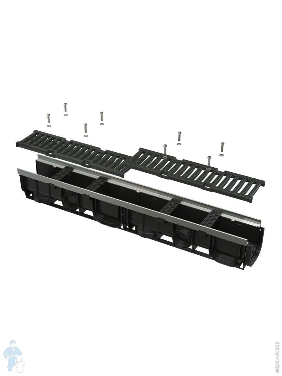 Дренажный канал ALCAPLAST AVZ102-R102 (100мм) пластиковая рама, оцинков. решетка C-образного профиляКод: 60863
