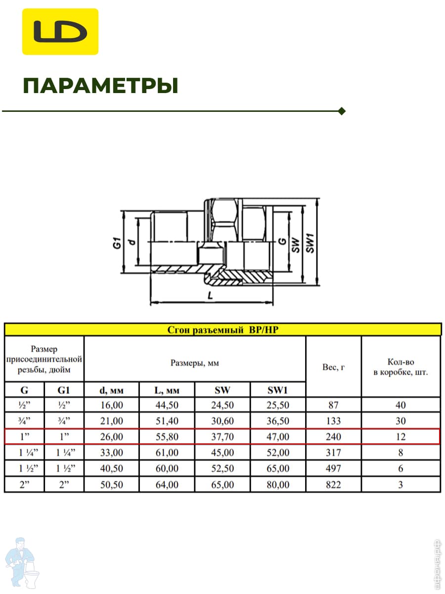 Диаметр: 1.1/4"Вх1.1/4"Н