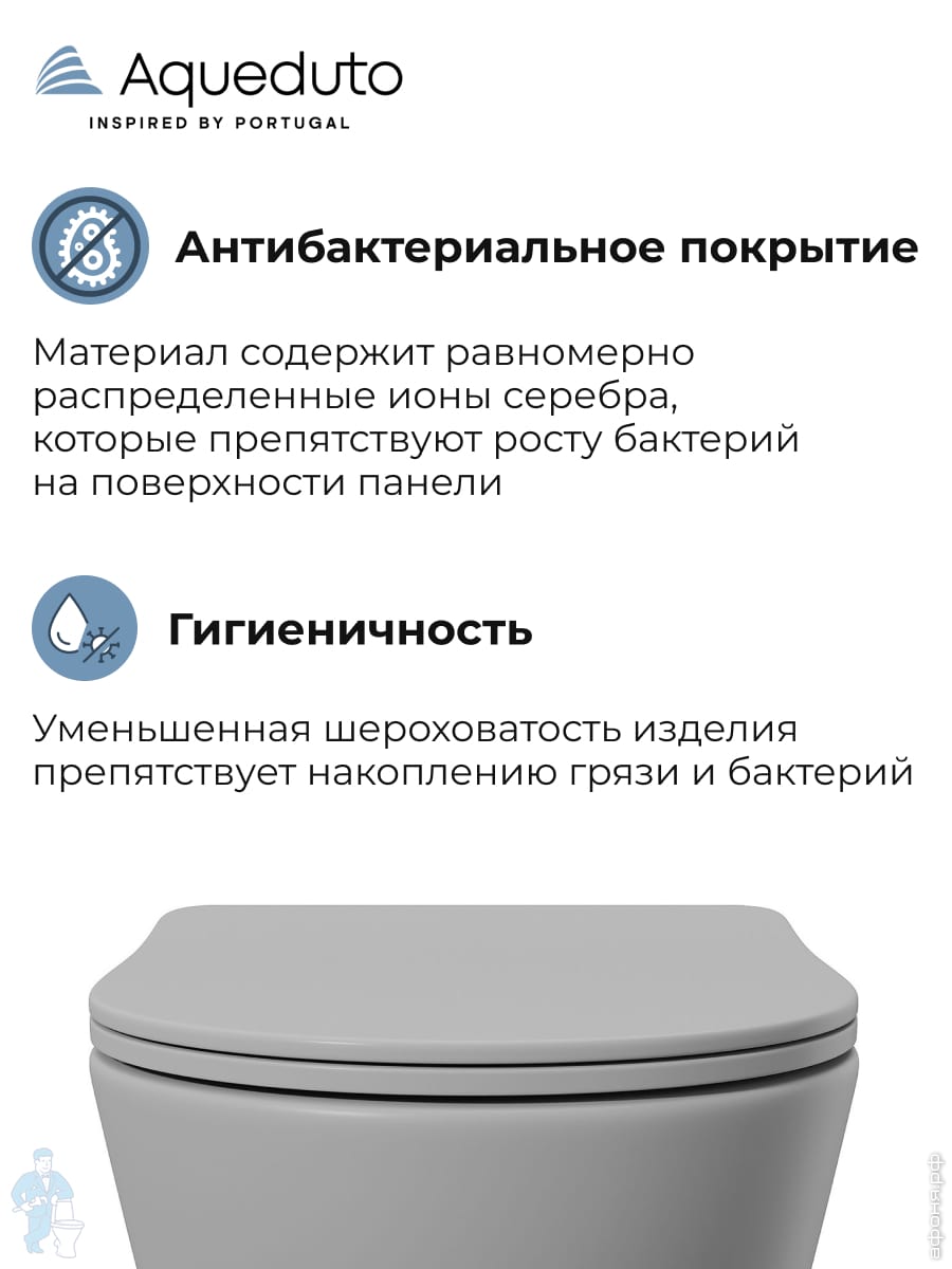 Унитаз подвесной Aqueduto Cone Tornado 525х360х350 безобод., сиденье с микролифт, серый мат CONT2130Код: 368594